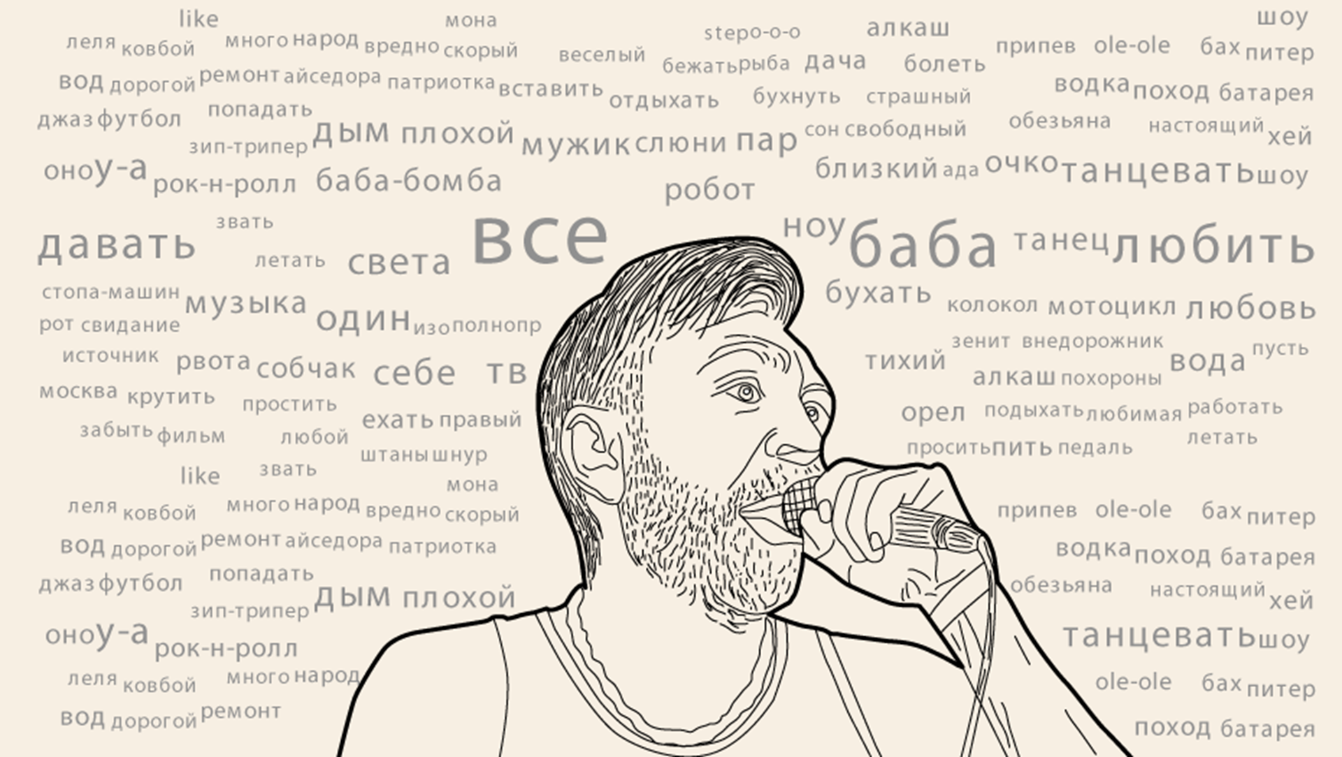 2016 год прошел под знаком «Ленинграда», песни и клипы группы били всевозможные рекорды, а «в восхитительных штанах» и «в Питере — пить» стали главными мемами страны. «ДП» решил подойти к творчеству Шнура по-научному строго — прослушал все альбомы и проанализировал лексику любимых песен.